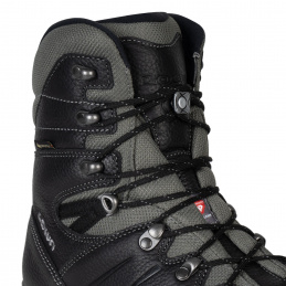 Для надійної та максимально комфортної фіксації стопи передбачена двозонна система шнурівки. Вона складається із закритих петель та гачків й дає зможу з різною силою зашнурувати зону стопи та щиколотки. Всередині черевика розміщена утеплена устілка LOWA® Insulate Pro. Вона має фольговану вставку всередині, яка екранує холод, який надходить від землі та зберігає тепло всередині. Таким чином нога захищена від холоду не тільки утеплювачем з боків, а й стопа залишається теплою.
